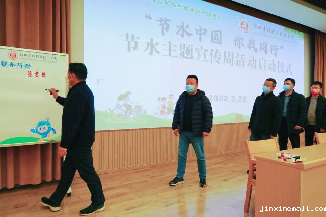 3月22号我院在图文信息中心一楼西会议室举行“江西建院节水主题宣传周活动”启动仪式,党委委员、副院长李淑林出席并讲话,全体与会人员观看《公民节约用水行为规范》视频并参加签名活动。上午9时,观看水利部牵头举办《公民节约用水行为规范》主题宣传活动启动仪式。3月23日,观看了国管局公共机构节能管理司会同水利部全国节约用水办公室组织开展的“节水中国 你我同行”主题云党课。