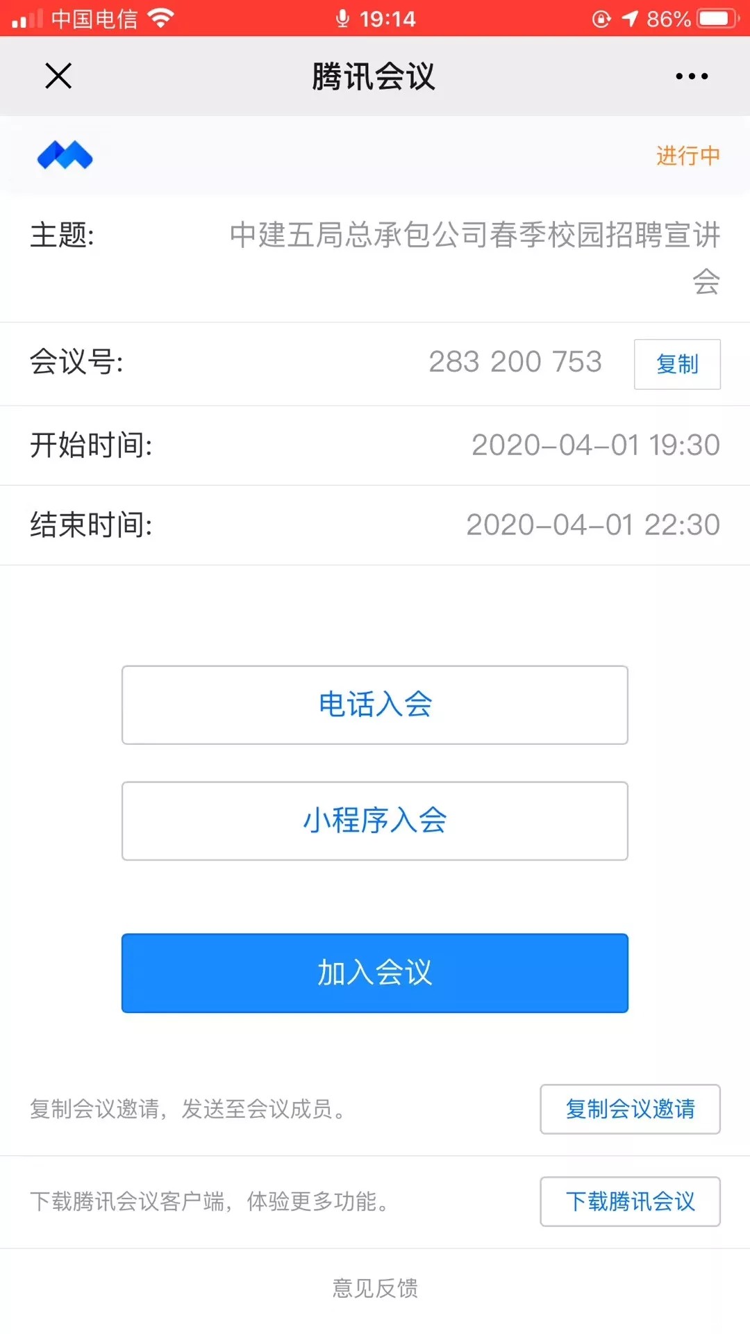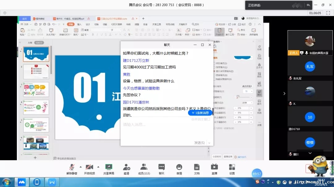 4月1日,我院诚邀世界500强企业中建五局为我院2020届毕业生举办专场网络视频招聘宣讲会,本次宣讲会是我院首场春季网络视频招聘宣讲会,使用腾讯会议直播形式进行,打造了一场全新的校园招聘宣讲会。 晚上7点半,中建五局总承包公司江西分公司taptap点点开元官网专场网络视频招聘宣讲会如期举行,宣讲会持续近2个小时,近200名毕业生在线观看直播宣讲。中建五局总承包公司江西分公司人力资源部朱超经理通过视频和PPT展示了公司的整体情况、介绍了员工晋升渠道,并对公司今年在江西的招聘计划进行了详细的说明。答疑环节中,我院毕业生积极互动,就薪资待遇、员工培训、工作地点、晋升渠道等方面提出自己关心的问题,朱超经理耐心地一一作出解答,对毕业生未来职业规划给出了指导与建议,直播期间气氛活跃。